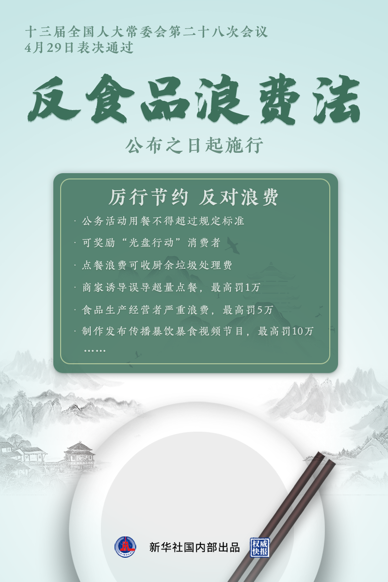 4月29日,十三屆全國人大常委會第二十八次會議表決通過反食品浪費(fèi)法,防止食品浪費(fèi)從此有法可依。